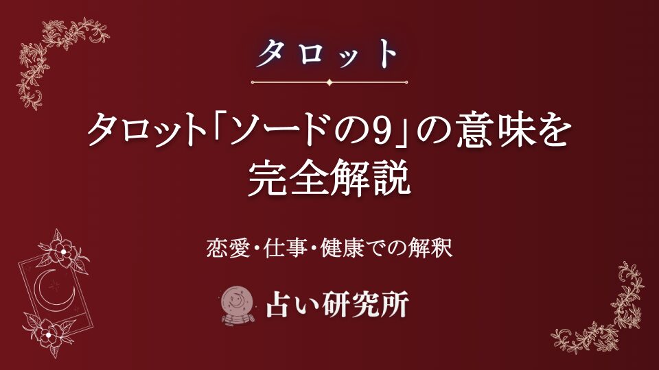 タロットカード小アルカナ「ソードの9」の基本的な意味から、正位置・逆位置の解釈、恋愛・仕事・金運・健康における具体的な読み方まで詳しく解説。悪夢や不安を象徴するこのカードの真の意味を理解し、占いの精度を向上させましょう。初心者から上級者まで役立つ実践的な内容をお届けします。