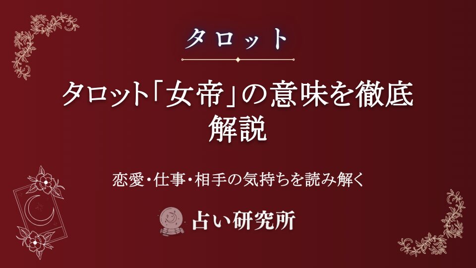 タロットカード大アルカナ「女帝」の詳細な意味を解説。正位置・逆位置での恋愛、仕事、相手の気持ちへの影響、他のカードとの組み合わせまで完全網羅。女帝が示すメッセージを深く理解し、占いの精度を向上させましょう。豊穣と母性の象徴である女帝カードの真の意味とは?
