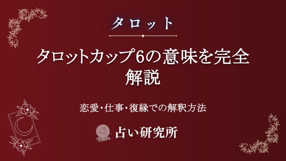 タロットカード小アルカナのカップ6の基本的な意味から、恋愛・仕事・復縁における正位置・逆位置の詳しい解釈まで分かりやすく解説。過去への思い、懐かしさ、癒しを象徴するこのカードの読み方をマスターして占いの精度を向上させましょう。