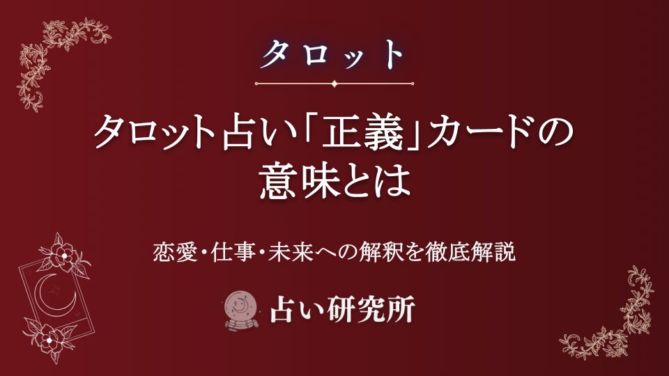 タロット占いの大アルカナ「正義」カードの基本的な意味から、正位置・逆位置の解釈、恋愛・仕事・人間関係における具体的なメッセージまで詳しく解説。正義のカードが示すバランス、公正性、因果応報の深い意味を理解し、あなたの占い結果をより正確に読み解くためのガイドです。