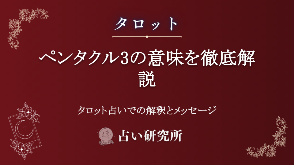 タロット占いのペンタクル3の詳しい意味を解説。正位置・逆位置の意味、恋愛・仕事・金運での解釈、他カードとの組み合わせまで完全網羅。協力、技術向上、チームワークを表すこのカードの深い意味を理解して、より的確な占い結果を導き出しましょう。