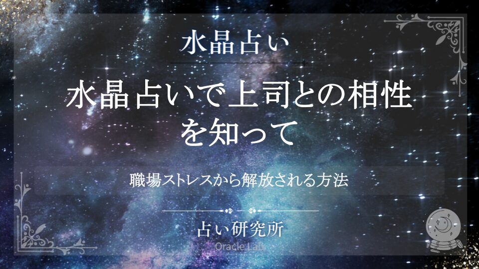 上司との相性が悪くて毎日職場が辛い…そんなあなたへ。水晶占いで上司の本質と最適な接し方を知る方法をご紹介。専門鑑定師による深い分析で、職場の人間関係を劇的に改善し、ストレスのない働き方を手に入れる具体的な解決策をお伝えします。一人で悩まず、的確なアドバイスで明るい職場生活を取り戻しましょう。