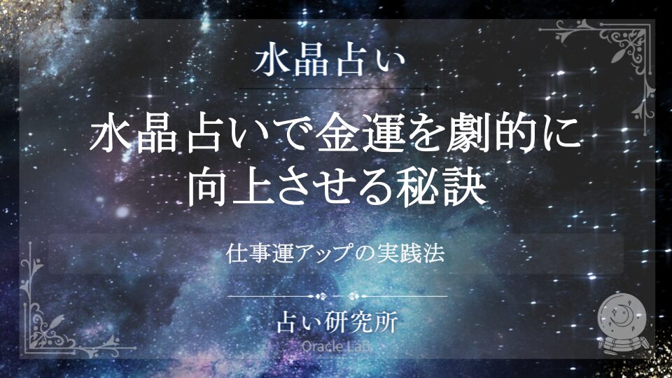 水晶占いによる金運・仕事運向上の具体的方法を専門家が解説。商売繁盛を実現するための水晶の選び方から、効果的な鑑定方法まで詳しく紹介します。あなたの経済状況を根本から改善し、豊かな未来を手に入れるための実践的なアドバイスをお届けします。水晶占いの力で人生を変えませんか。