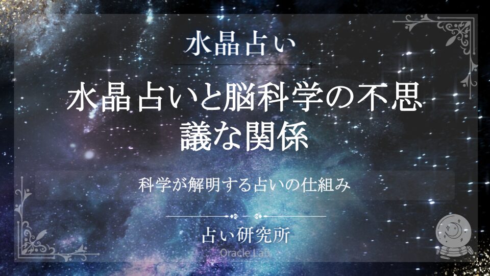 水晶占いが当たる理由を脳科学の視点から解説。直感・潜在意識・脳波との関係、心理学的メカニズムを分析し、科学的根拠に基づいた占いの効果を探ります。専門的な水晶鑑定で人生の答えを見つける方法もご紹介。占いに興味がある方、科学的な仕組みを知りたい方必見の内容です。