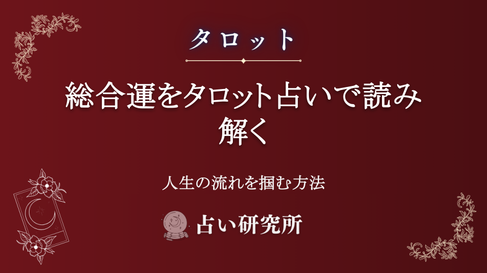 タロット占いで総合運を読み解き、恋愛・仕事・健康・金運など人生全般の運勢を把握する方法をご紹介。セルフリーディングのコツから各カードの意味、スプレッドの選び方まで詳しく解説します。タロット初心者でも実践できる総合運占いで、あなたの人生の流れを掴みましょう。