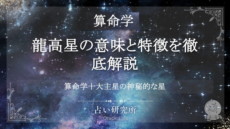 算命学の十大主星の一つ「龍高星」について詳しく解説します。龍高星の基本的な意味、性格的特徴、恋愛傾向、仕事運、相性の良い星、開運方法まで幅広くご紹介。あなたの命式に龍高星がある場合の活用法や注意点も分かりやすく説明していますので、算命学初心者から上級者まで参考にしていただけます。