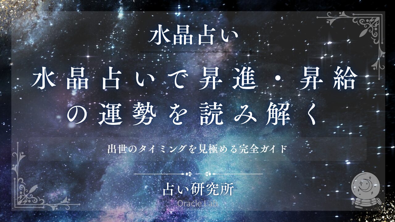 水晶占いは、あなたの出世運、昇進・昇給の時期、妨げている障害、運勢を上げる方法を読み解くことができます。「今年昇進できる」「3年後」「上司との関係が鍵」「転職すべき」——これらの具体的な答えが得られます。