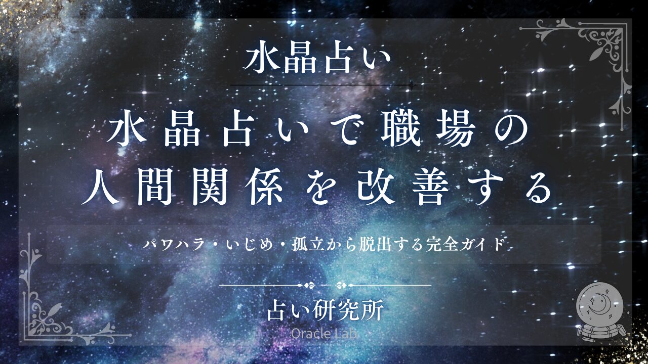職場の人間関係で苦しんでいませんか?水晶占いで職場の人間関係の問題を見抜き改善する方法があります。この記事では、上司・同僚との確執を示すサイン、職場いじめの根本原因、20年以上の経験を持つプロの鑑定師が教える人間関係改善の秘訣を徹底解説。転職する前に、職場の人間関係を示す色とシンボル、パワハラ上司との付き合い方、孤立からの脱出法、転職すべきタイミング、職場の派閥への対処、苦手な同僚との距離の取り方、前世からの因縁を学びましょう。水晶占いで働きやすい職場環境を手に入れます。