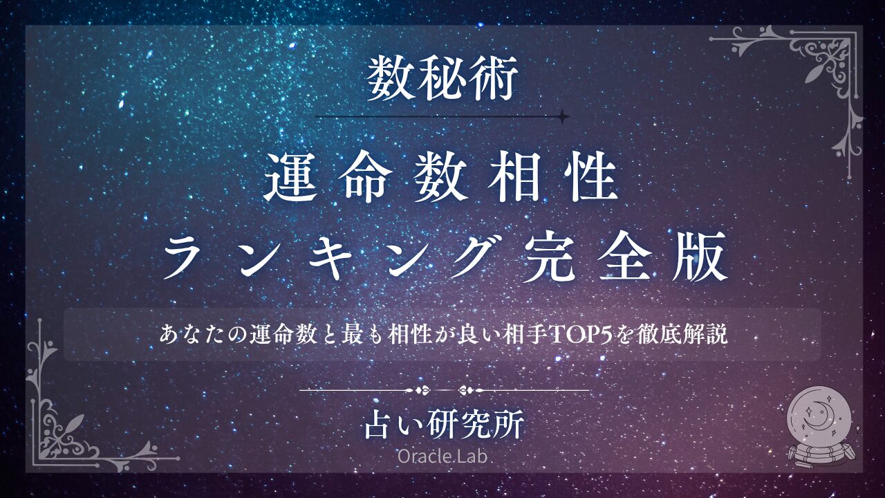 運命数相性ランキングを完全網羅。運命数1から9、マスターナンバー11・22・33それぞれについて、最も相性の良い運命数をランキング形式で詳しく解説します。「自分の運命数と一番相性が良いのは誰?」「どの運命数を優先的に選べばいい?」「相性ランキングの根拠を知りたい」という方のために、各運命数の相性TOP5とその理由、恋愛・友情・仕事での相性の違い、ランキング下位でも関係を改善する方法まで網羅的に紹介。一般的な相性診断と専門的な数秘術相性ランキングの違いも比較し、あなたの運命数に最も相性の良い相手をランキングから見つけ、理想的な関係を築くための実践的ガイドをお届けします。