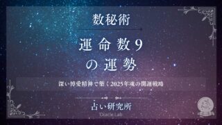 2025年の詳しい運勢については、運命数9の運勢を理想的な幸福に昇華させる方法|深い博愛精神で築く2025年魂の開運戦略で月別の詳細な運勢と具体的な開運法をご確認ください。