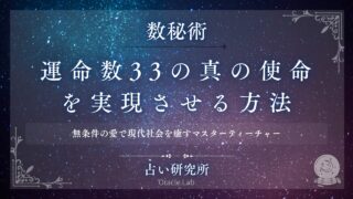 運命数33は、数秘術における最も神聖で進化したマスターナンバーです。この完全ガイドでは、運命数33の本質から性格、恋愛、相性、才能、そして2025年の運勢まで、あらゆる側面を網羅的に解説しました。
