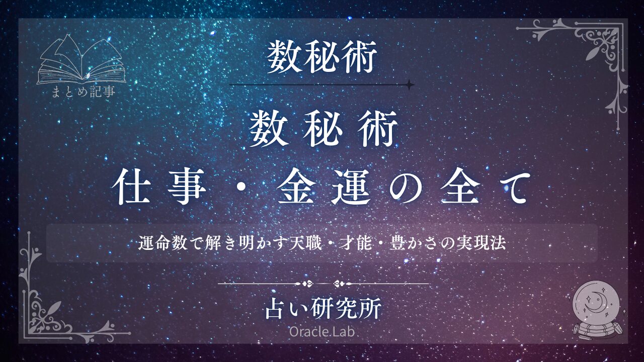 数秘術は、キャリアと経済的成功において最も実践的で強力な洞察ツールです。このガイドでは、運命数を活用した天職の発見、隠れた才能の開花、適職の選択、金運の向上、そして魂が求める本当の使命の実現まで、仕事とお金に関するあらゆる側面を網羅的に解説します。あなたの運命数が示すキャリアパターン、職業的強み、成功への道筋、そして豊かさを引き寄せる方法を深く理解することで、単なる「仕事」を超えた、魂の目的と経済的繁栄が調和した人生を実現できます。各運命数の詳細な職業適性、具体的な成功戦略、金運アップの実践法まで、キャリアと経済的成功のために必要なすべての知識と実践法を提供する、究極の仕事・金運ガイドです。