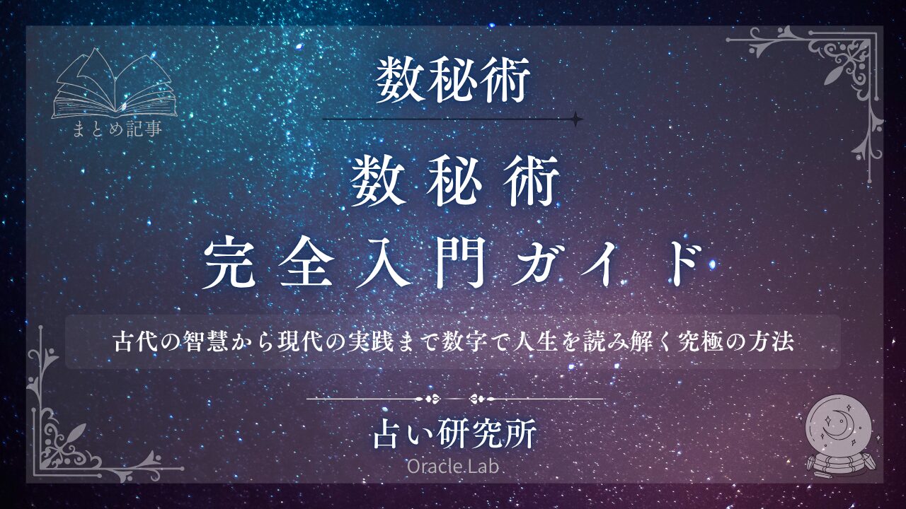 数秘術は、数千年の歴史を持つ古代の智慧であり、現代においても最も実践的で強力な自己理解のツールです。このガイドでは、数秘術の本質的な意味から、古代文明から現代に至る歴史、ピタゴラス式・カバラ式などの主要な流派、そして初心者でもすぐに実践できる具体的な計算方法と活用法まで、数秘術に関するすべての基礎知識を網羅的に解説します。数字が持つ神秘的な意味、宇宙の法則との関係、あなたの運命数の計算方法、そして日常生活での実践的な活用法を深く理解することで、単なる占いを超えた、人生を変容させる智慧の体系として数秘術を活用できます。数秘術とは何か、どこから来たのか、どのように使うのか──この一つのガイドで、数秘術の全体像を完全に把握できる、究極の入門書です。