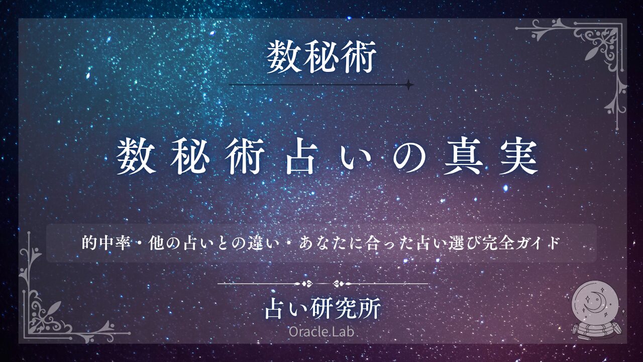 数秘術占いを徹底解説。「数秘術は占いなの?」「タロットや星座占いと何が違う?」「どんな悩みに向いている?」「信頼できる数秘術占いは?」という疑問に答えます。数秘術と占いの関係、数秘術占いの特徴と仕組み、タロット・星座占い・四柱推命など他の占いとの詳細比較、数秘術占いのメリット・デメリット、向いている悩みと向いていない悩み、数秘術占いと自己分析ツールの違い、信頼できる数秘術占い師の見極め方、無料と有料の違い、実際の的中事例まで網羅的に紹介。数秘術占いの本質を理解し、自分に最適な占いを選び、悩みを解決するための完全ガイド。初心者でもわかりやすく、今すぐ選択できる内容をお届けします。