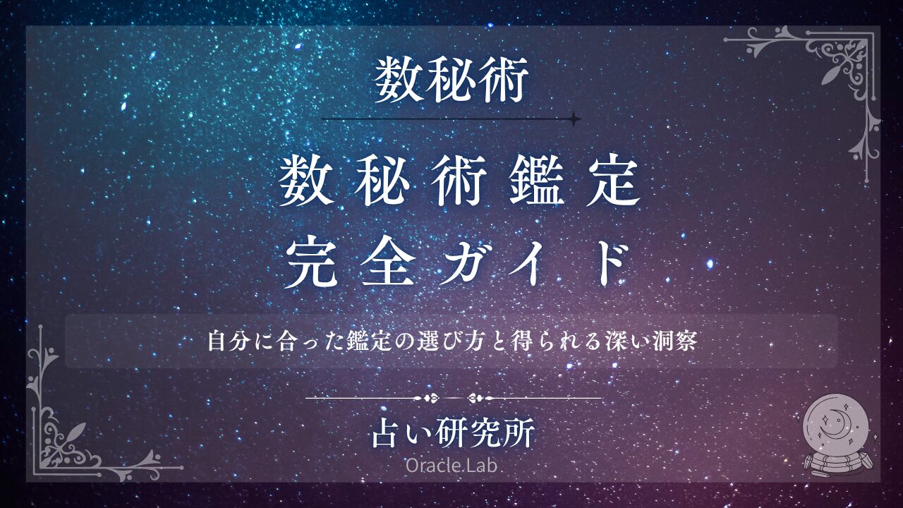 数秘術鑑定を徹底解説。「数秘術鑑定って何をするの?」「自己学習とプロ鑑定の違いは?」「どの鑑定を選べばいい?」「鑑定で何がわかるの?」という疑問に答えます。数秘術鑑定の種類、自己学習・無料ツール・プロ鑑定の比較、プロ鑑定で得られる深い洞察、鑑定の選び方、オンライン鑑定と対面鑑定の違い、鑑定料金の相場と価値、良い鑑定師の見極め方、実際の鑑定の流れ、鑑定後の活用法まで網羅的に紹介。数秘術鑑定を正しく理解し、自分に最適な鑑定を選び、人生を好転させるための完全ガイド。初心者でもわかりやすく、今すぐ選択できる内容をお届けします。