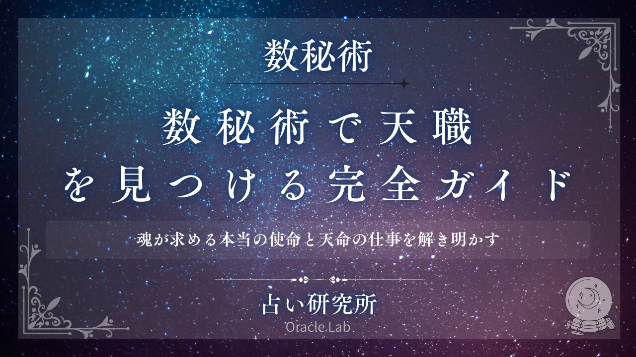 数秘術で天職を徹底解析。「天職がわからない」「魂が求める仕事を知りたい」「人生の使命を果たしたい」「天職に出会いたい」という悩みを、数秘術の視点から解決します。運命数1から9、マスターナンバー11・22・33それぞれの天職、天職と適職の違い、天職に出会うサイン、天職を見つける方法、天職で人生の使命を果たす秘訣、数秘術を活用した天職発見法まで網羅的に紹介。一般的なキャリア相談と専門的な数秘術天職鑑定の違いも比較し、あなたの運命数から天職を明確に特定し、魂が求める仕事に就き、人生の使命を果たすための実践的ロードマップをお届けします。
