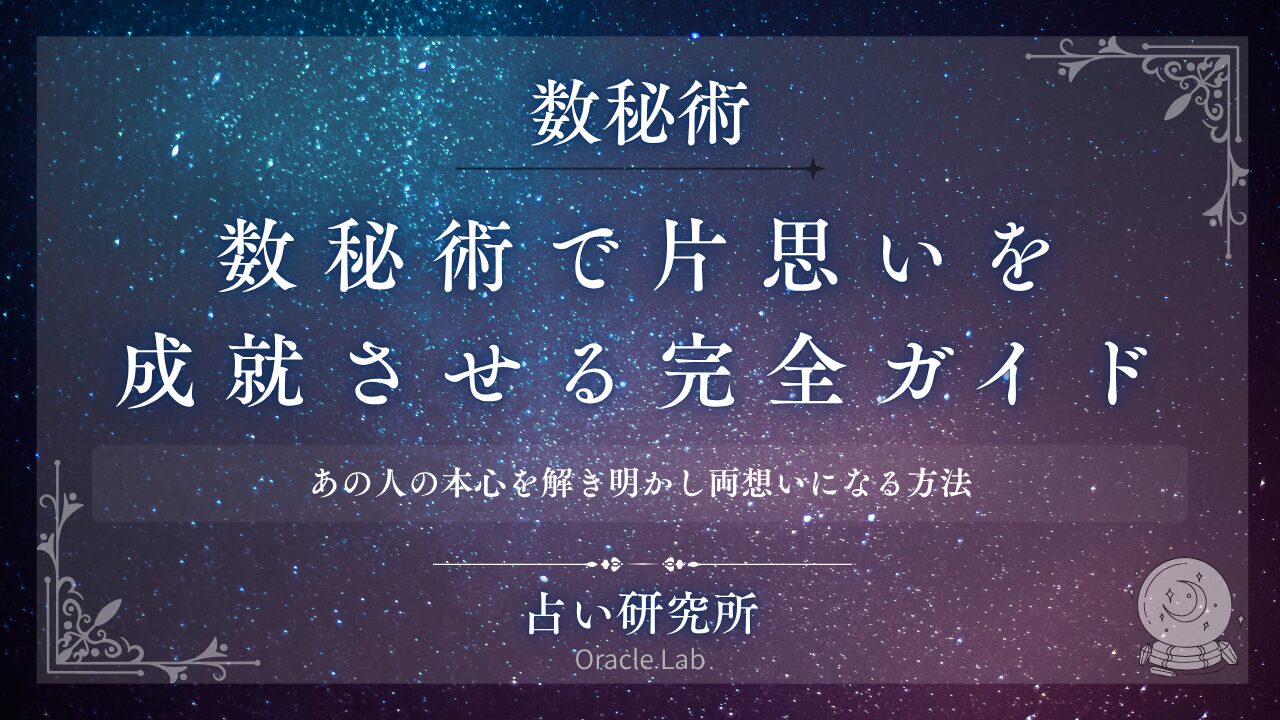 数秘術で片思いを成就させる方法を徹底解説。「片思いの相手は私をどう思ってる?」「告白すべきタイミングはいつ?」「相手の運命数との相性は?」「片思いが実るか不安」という悩みを、数秘術の視点から解決します。運命数から見る相手の恋愛傾向と好みのタイプ、片思い成就の相性分析、効果的なアプローチ方法、告白に適したタイミング、運命数別の攻略法、片思いが実る可能性の判定まで網羅的に紹介。一般的な片思い相談と専門的な数秘術片思い鑑定の違いも比較し、あなたの運命数と相手の運命数から最適な片思い成就戦略を立て、確実に両想いになるための実践的ロードマップをお届けします。