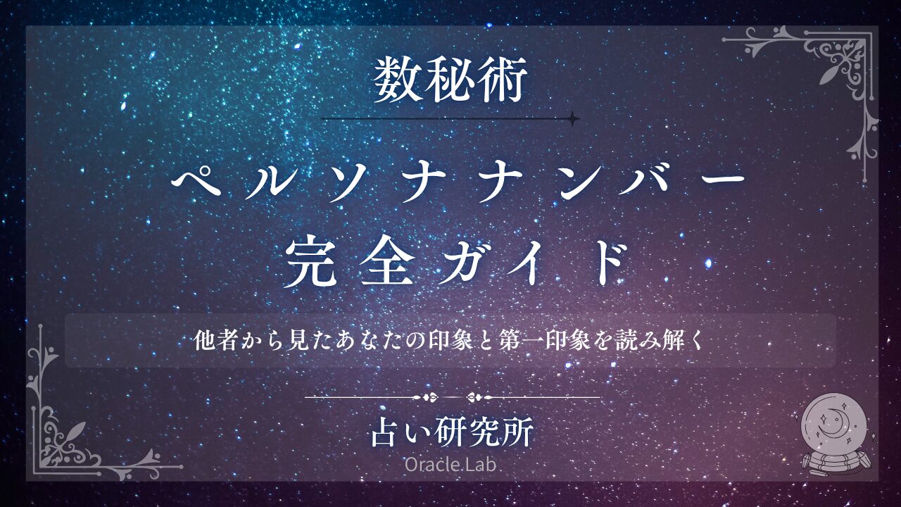 ペルソナナンバーを徹底解説。「ペルソナナンバーって何?」「第一印象がわかるって本当?」「自分がどう見られているか知りたい」「ペルソナナンバーをどう活かせばいいの?」という疑問に答えます。ペルソナナンバーの定義、計算方法(名前の子音から)、ペルソナナンバー1から9・マスターナンバー11・22・33それぞれの第一印象と外側の人格、ディスティニーナンバー・ソウルナンバーとの関係、内面とのギャップの理解、第一印象を活かす方法、人間関係での活用法まで網羅的に紹介。ペルソナナンバーを正しく理解し、他者からの印象を知り、より良い人間関係を築くための完全ガイド。初心者でもわかりやすく、今すぐ実践できる内容をお届けします。