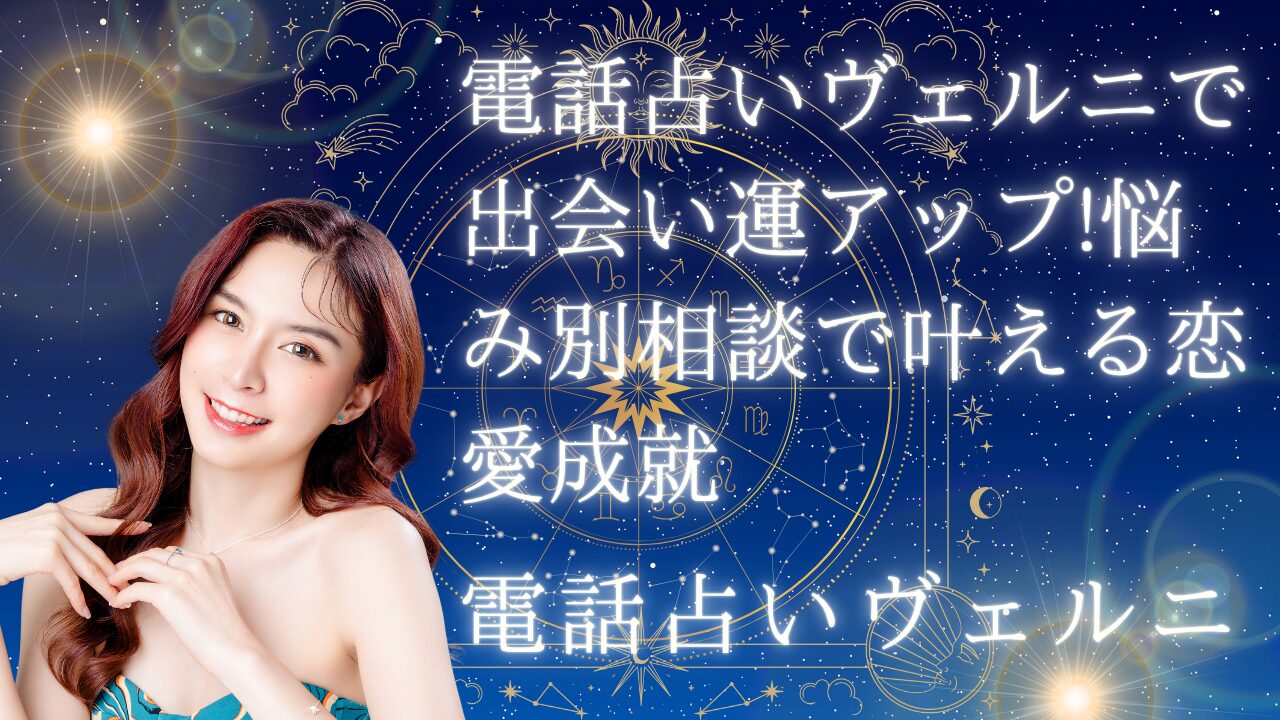 電話占いヴェルニで出会い運を劇的に改善!300名以上の実力派占い師があなたの恋愛の悩みを解決。初回特典で最大4,000円分無料。出会いがない、良縁に恵まれないとお悩みの方に、当たると評判の占い師と具体的な相談方法をご紹介します。今すぐ運命を変えましょう。